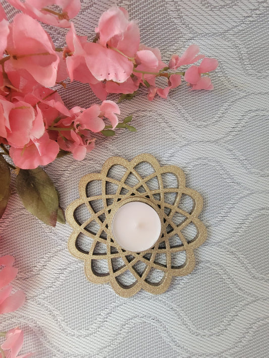 Set of 3 Wooden Tea Light Candle Holders - Flower
