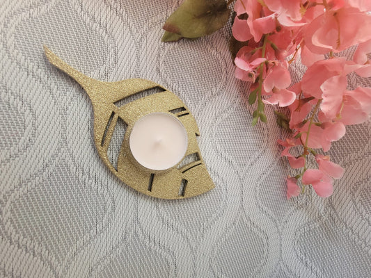 Set of 3 Wooden Tea Light Candle Holders - Leaf