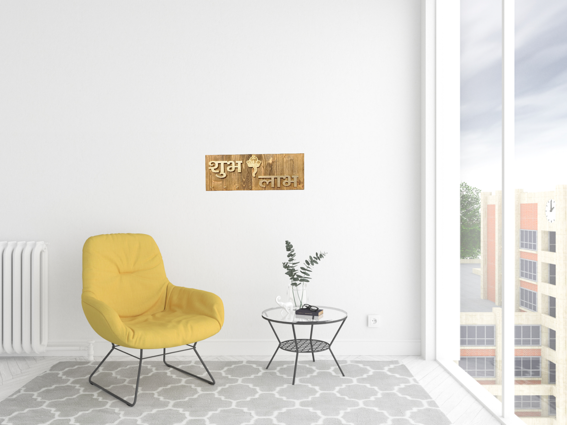 Add a traditional touch to your home with our Indian Shubh Labha Home Decor. This beautiful decoration piece is perfect for your main door, office or Mandir, and adds a welcoming feel to your home. The wooden natural finish base plank and golden finish Shubh Labha are designed to bring good luck and prosperity to your home. This is also an ideal gifting option as a return gift, housewarming, wedding, and festive gift. The size of this decor is 6" x 16".