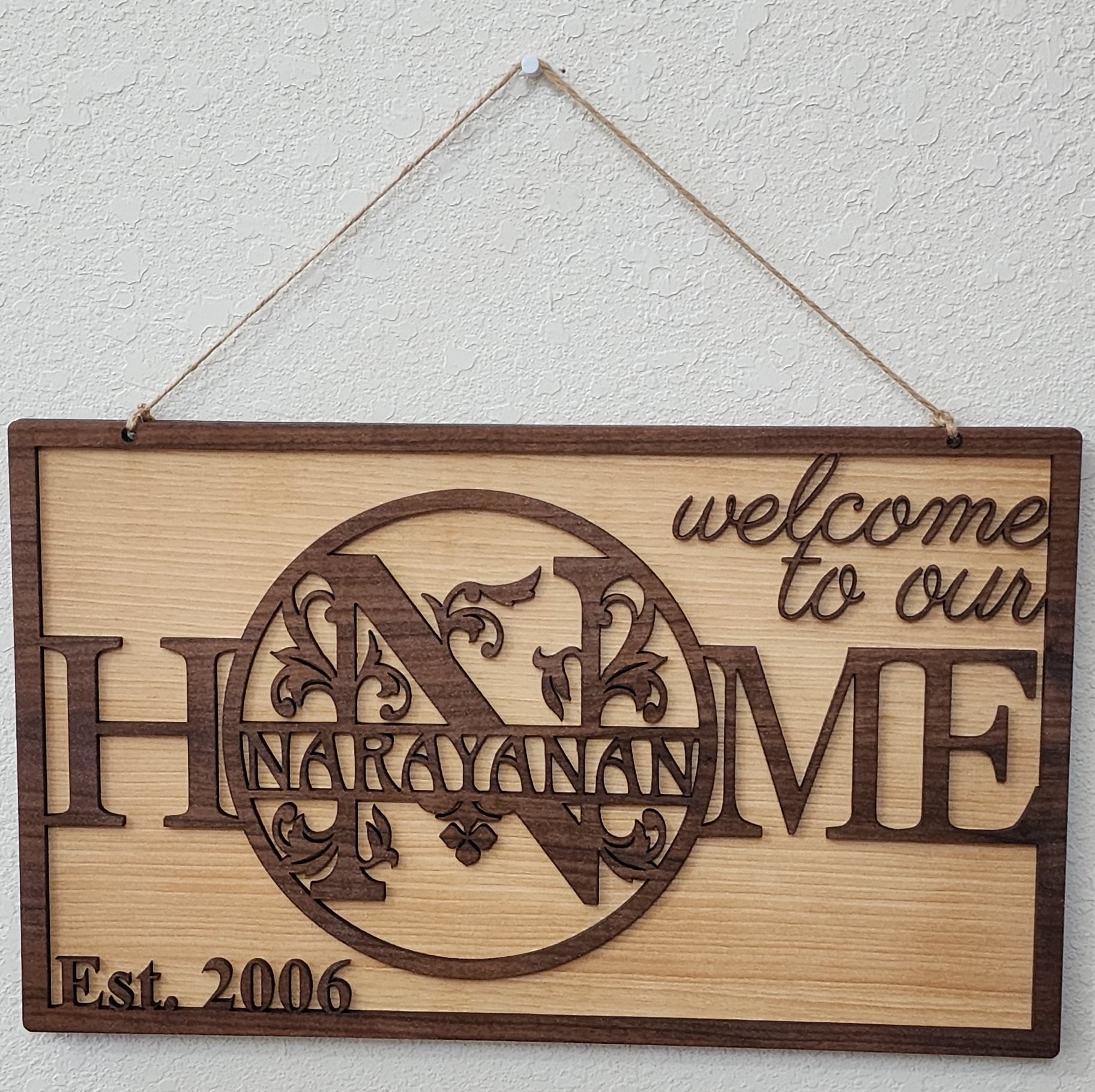 Add a personal touch to your home with our customized Designer Family Name sign. Made from high-quality wood using laser technology, this elegant name sign features your family name in a stylish designer font. Perfect for indoor or outdoor use, this name sign comes with pre-drilled holes and mounting hardware for easy installation. Whether you're looking to update your home decor or give a thoughtful housewarming gift, our personalized name sign is sure to impress. Order now and add a touch of elegance to your home!